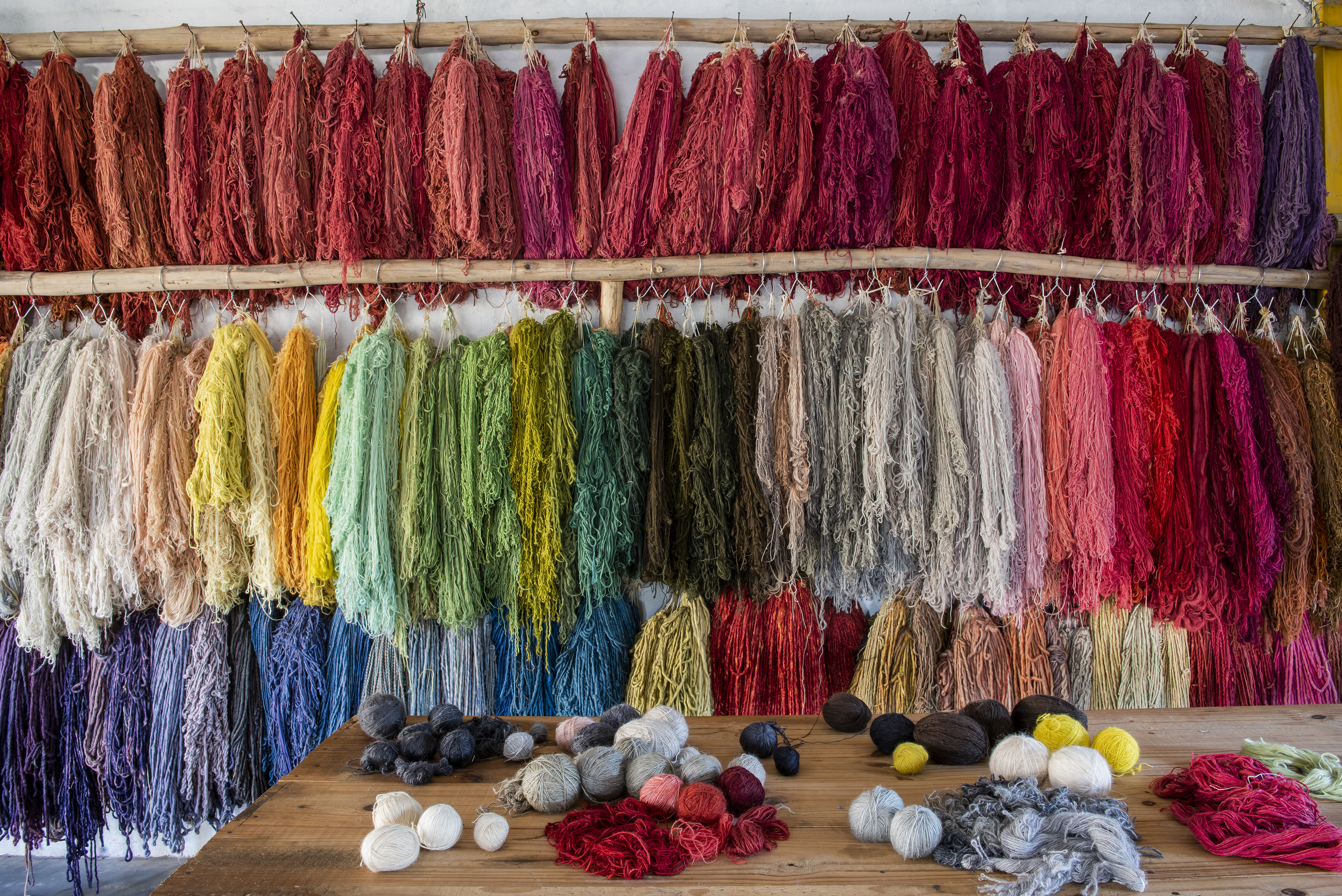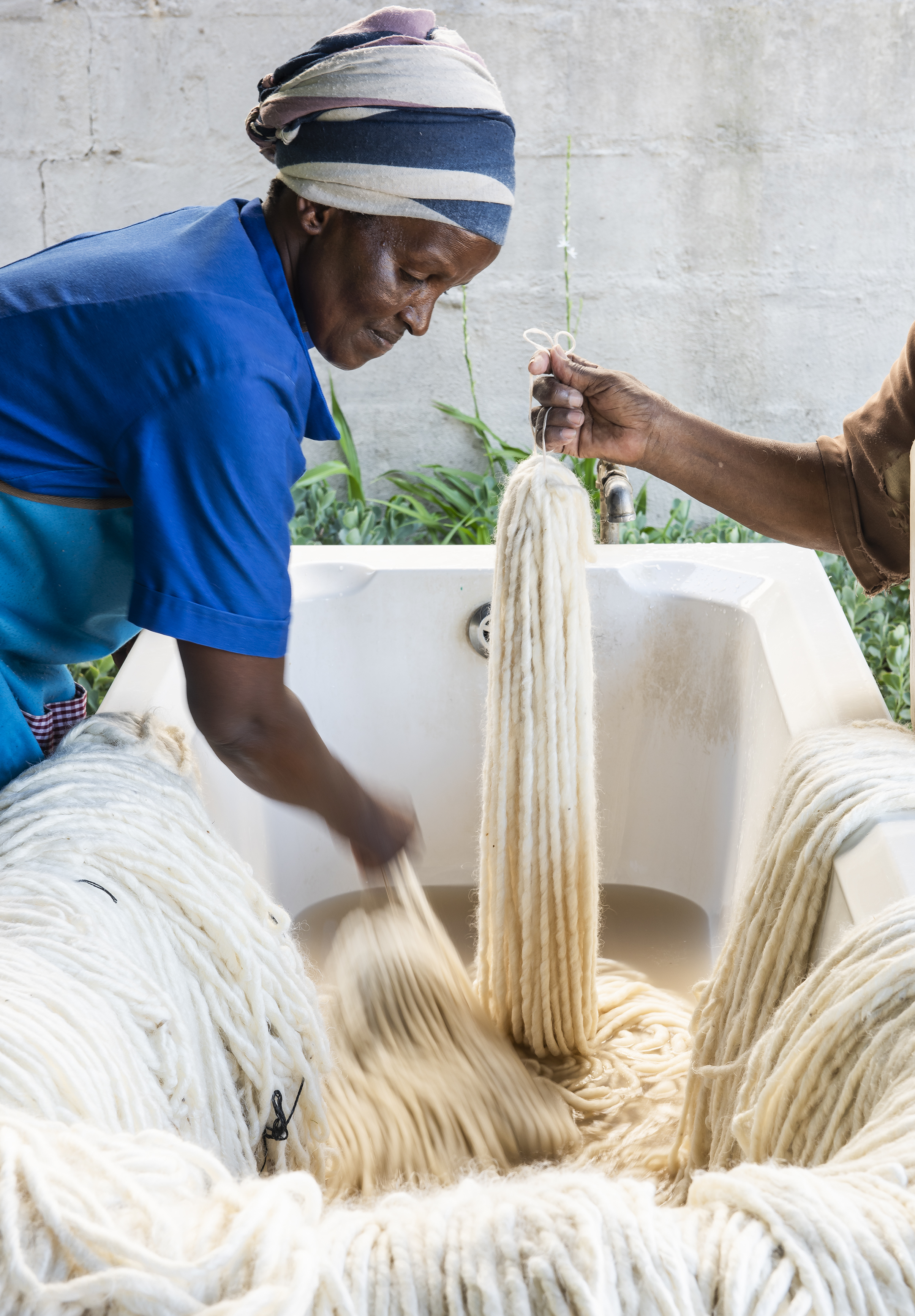 Behind every Stephens tapestry lies the shimmering strength of mohair - sourced from Angora goats in South Africa’s Eastern Cape. “We buy bales by the kilo,” Stephens says, “then send them up to Eswatini, where spinners are given bags of raw mohair to process from their rural homesteads. This works well since they don’t need to travel and which means they can manage their farms and look after their children while they earn.” Once spun, the mohair is washed and then dyed by hand and to achieve an endless spectrum of colour. “It lasts forever,” she says. “The warp will rot before the mohair does.”
