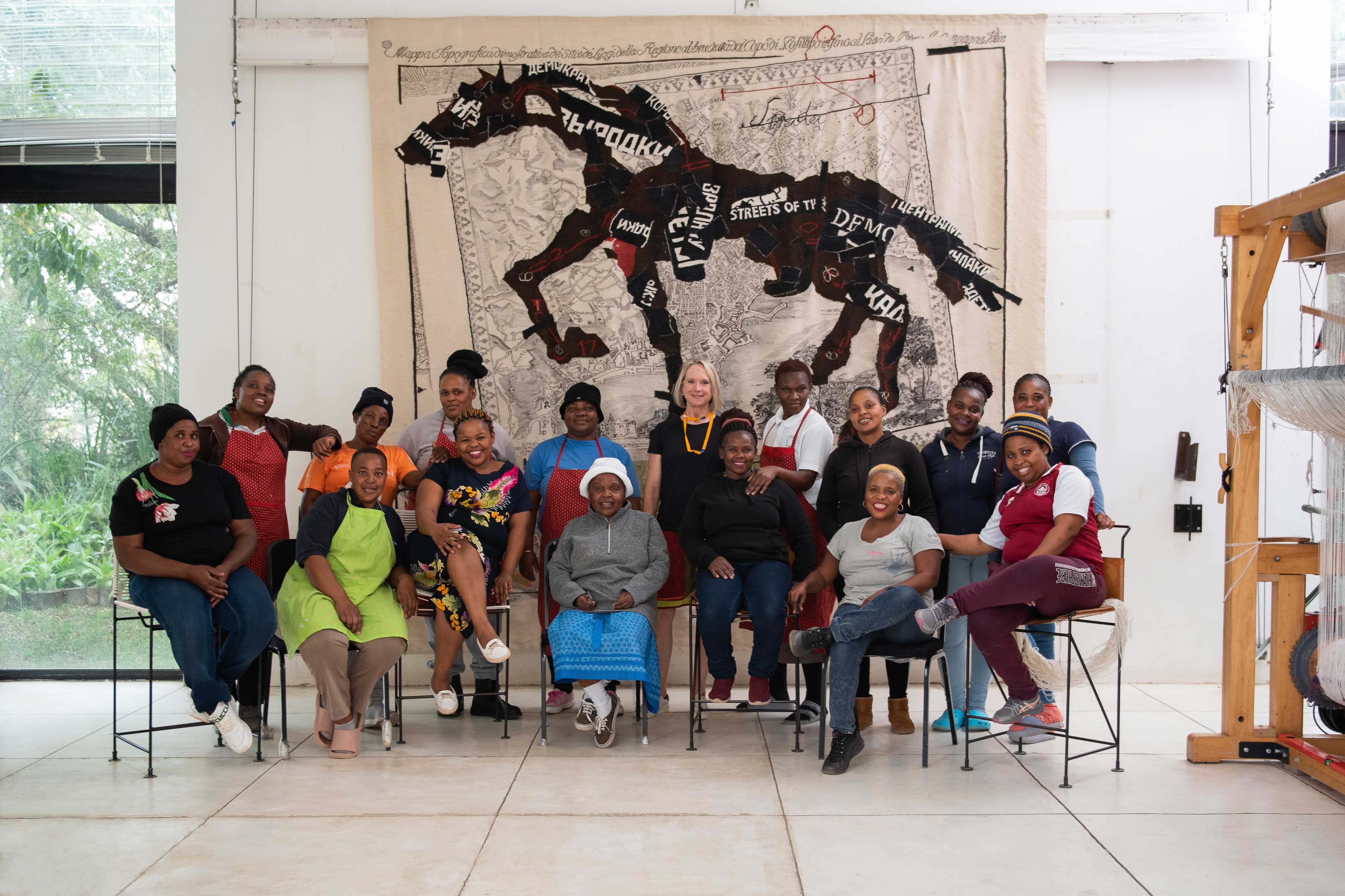 Grace Zulu, who once worked for Stephens’ mother, later joined Mags in Johannesburg. Grace’s daughter Margaret Zulu, her granddaughter Fortunate, her niece Treasure and now her great-granddaughter Precious - the fourth generation - have all woven or are weavers at the Stephens Tapestry Studio.