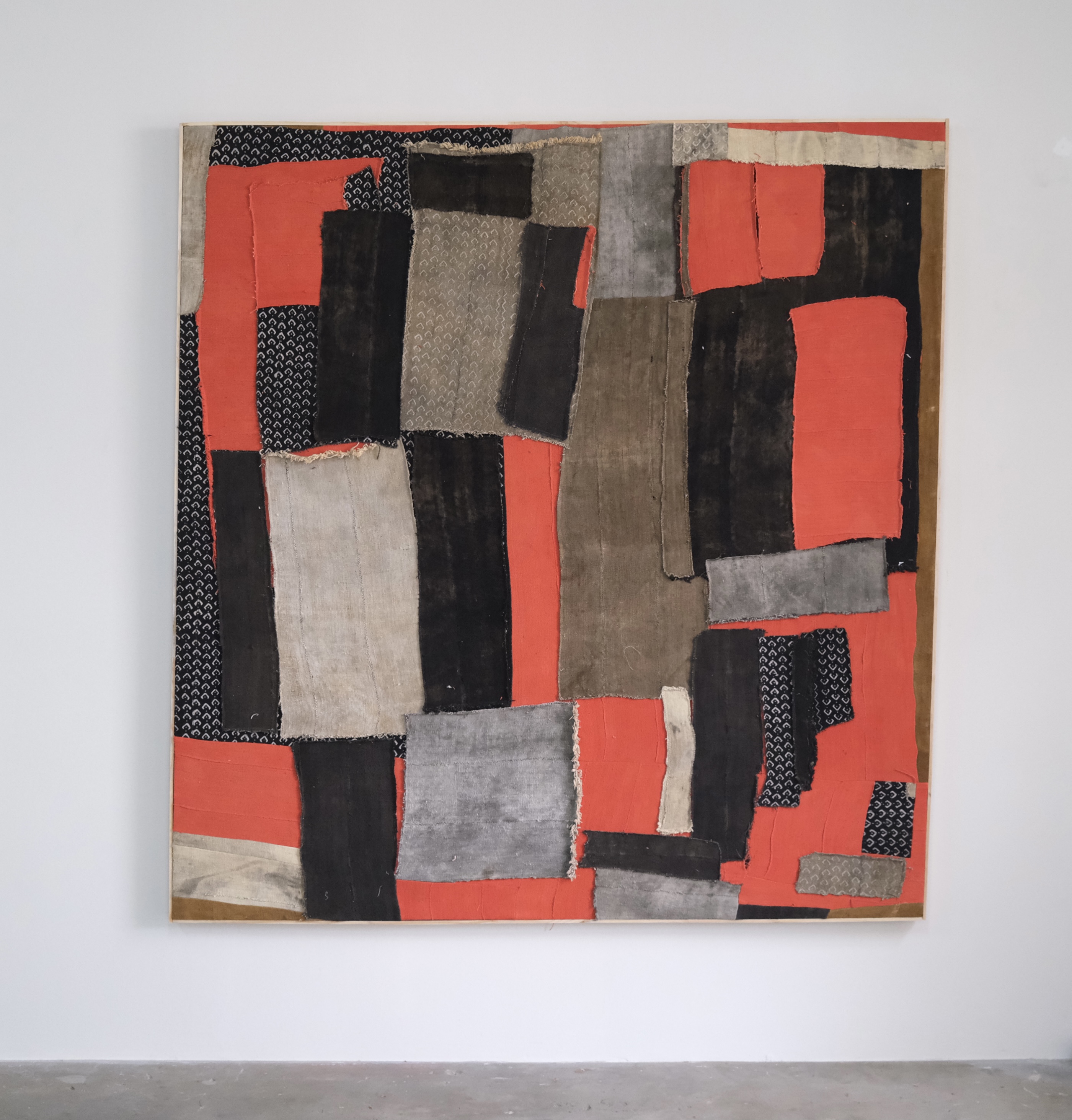 I’m not sure if collage is a fitting descriptor. After all, for Max Ernst, collage supposes the combination of dissonant materials on a plane that is further disjunctive. Calver, however, produces large canvases in which unevenly cut textiles are sewn together into an irresistibly beautiful and gentle concert. Aurally, I’m reminded of the music of Eric Satie, of sounds as limpid, as soft, as easeful, for this, undoubtedly, is the mood and sonography of Calver’s art. There is, for instance, a patchwork, rather than collage, composed in a symphony of pink, with elements of blue and orange subtly integrated. In the composition, pieces are cut and shifted about. If the colour field is deemed too strong, too stringent, the composition is then bleached, or, inversely, redyed. Colour is never a given in Calver’s world. And if Rothko is a core inspiration, it is because he understood the integral and numinous matter of light.