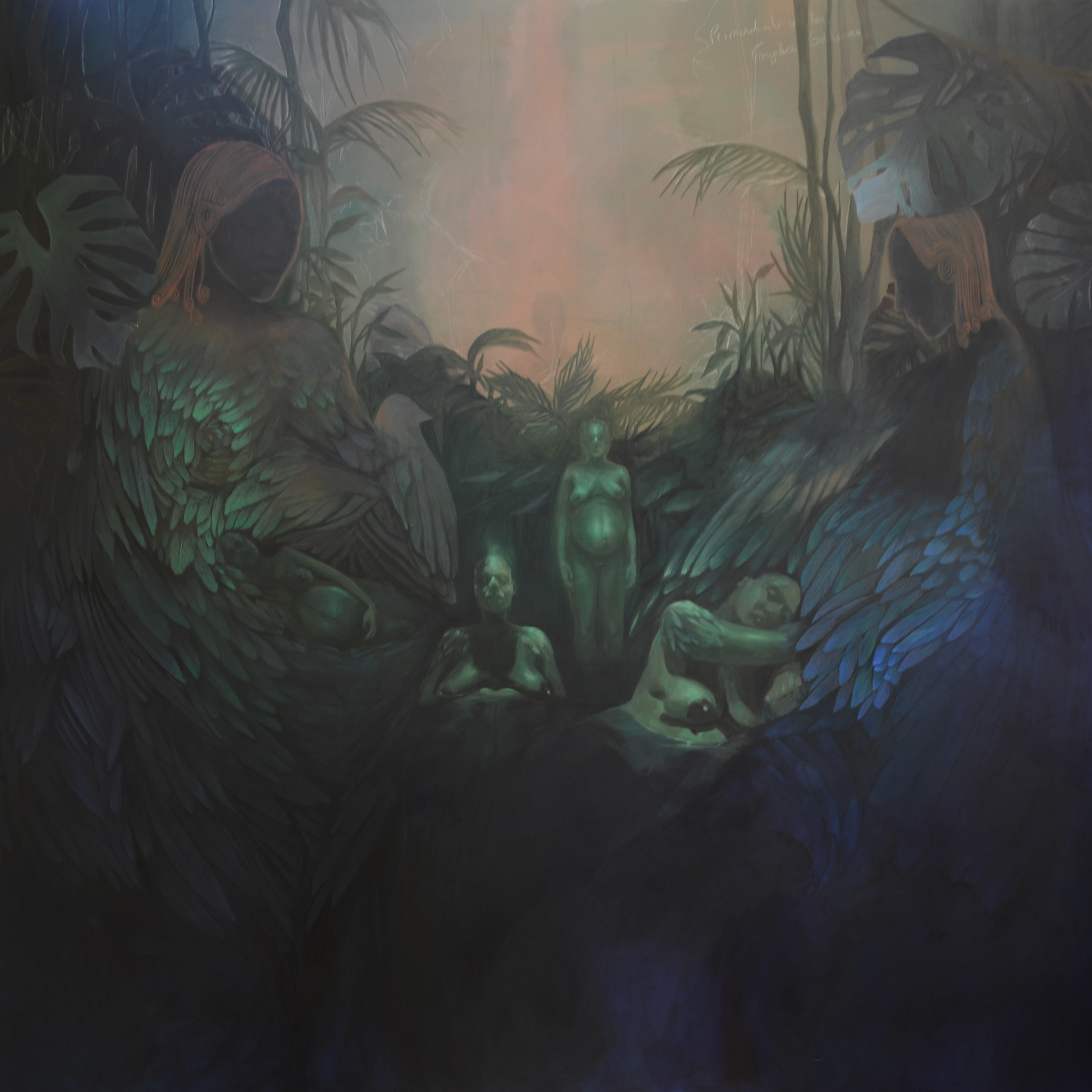 Carine Mansan Chowanek, The Primoridale Waters, From the Women Bird Series, 2025, From the women bird series, Oil painting on canvas.