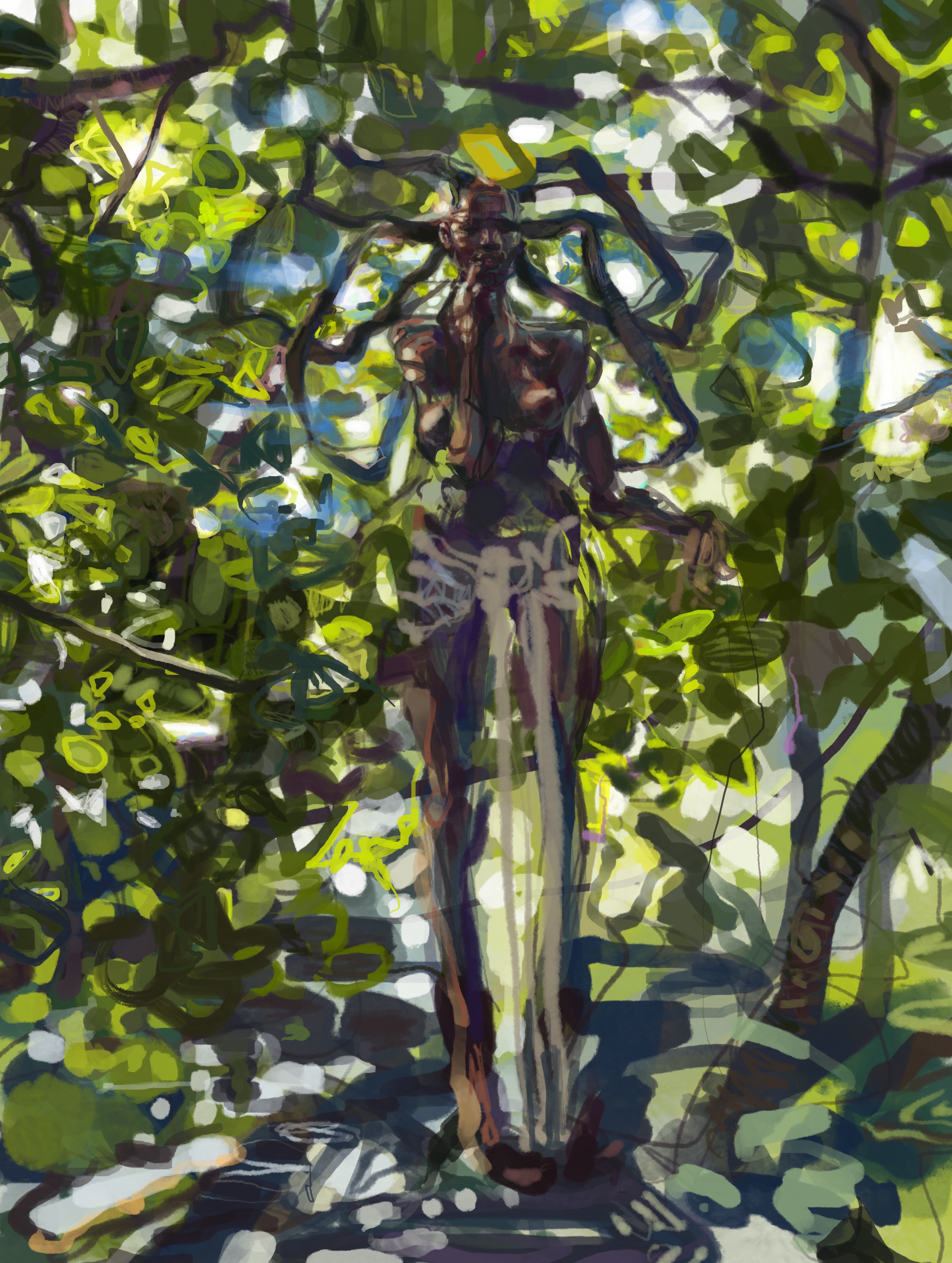 Anthony Azekwoh, The Fates, Digital Painting on canvas, 196.58 x 139.7 cm.