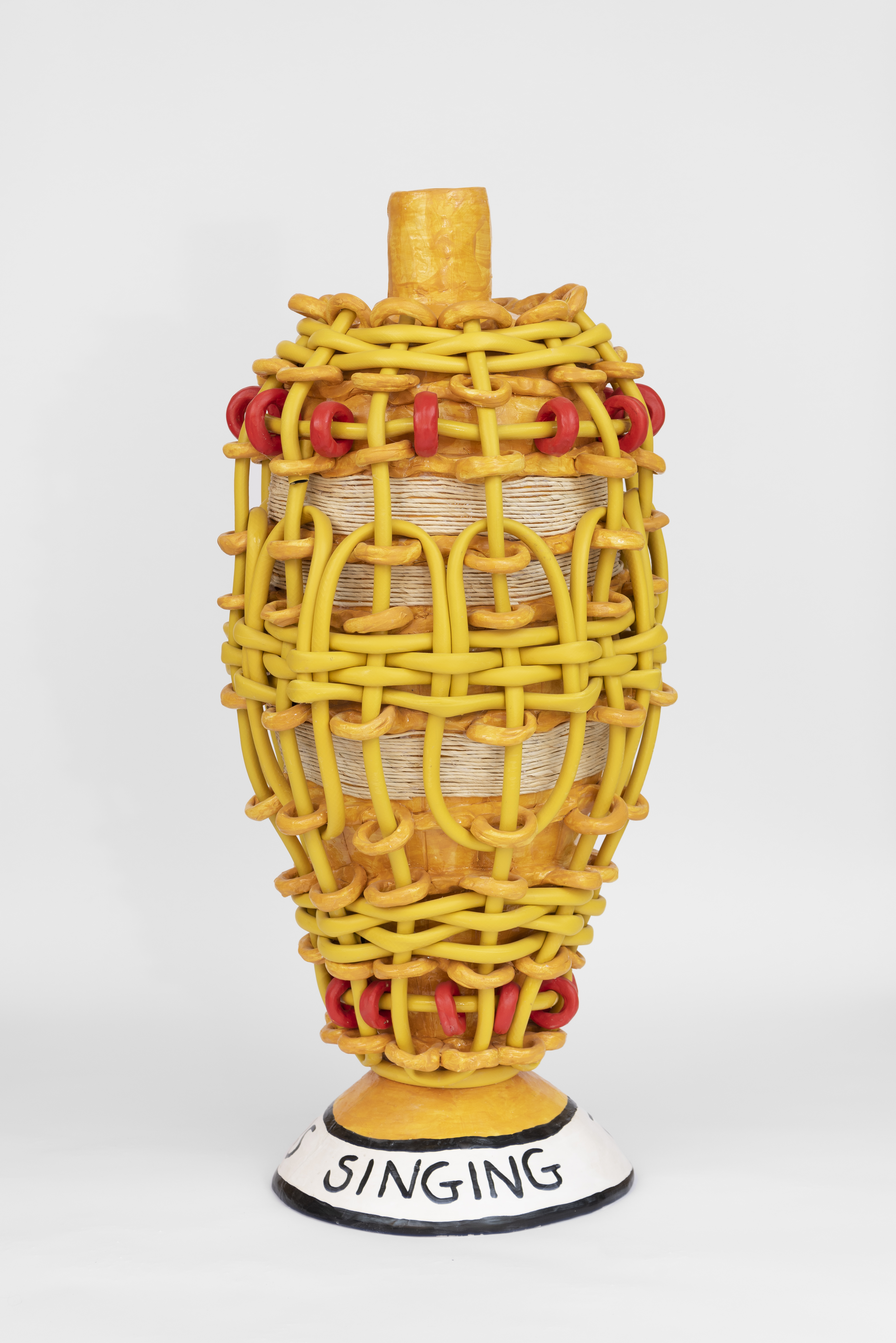 Her work as a ceramic sculptor looks at reimagining everyday life and examining the subtle treason of objects. Through a sense of play, bright colours, mocking tone and exaggerated shapes, the artist tries to challenge the prevailing ideas associated with normalcy, beauty and refinement which have been manipulated by the Christian-Colonial gaze fixed strongly on southern Africa.