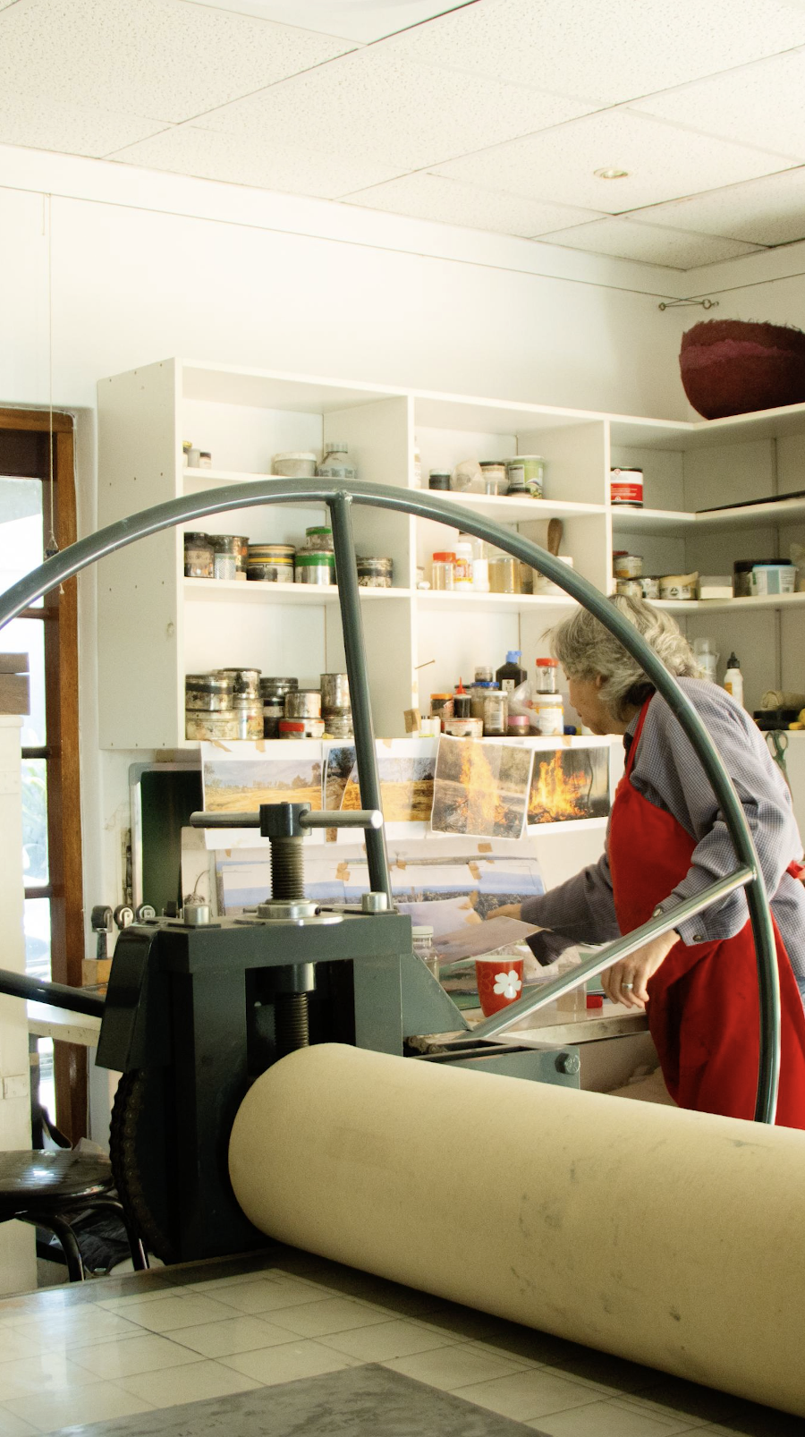 Kim Berman in the printmaking studio, courtesy of the University of Johannesburg