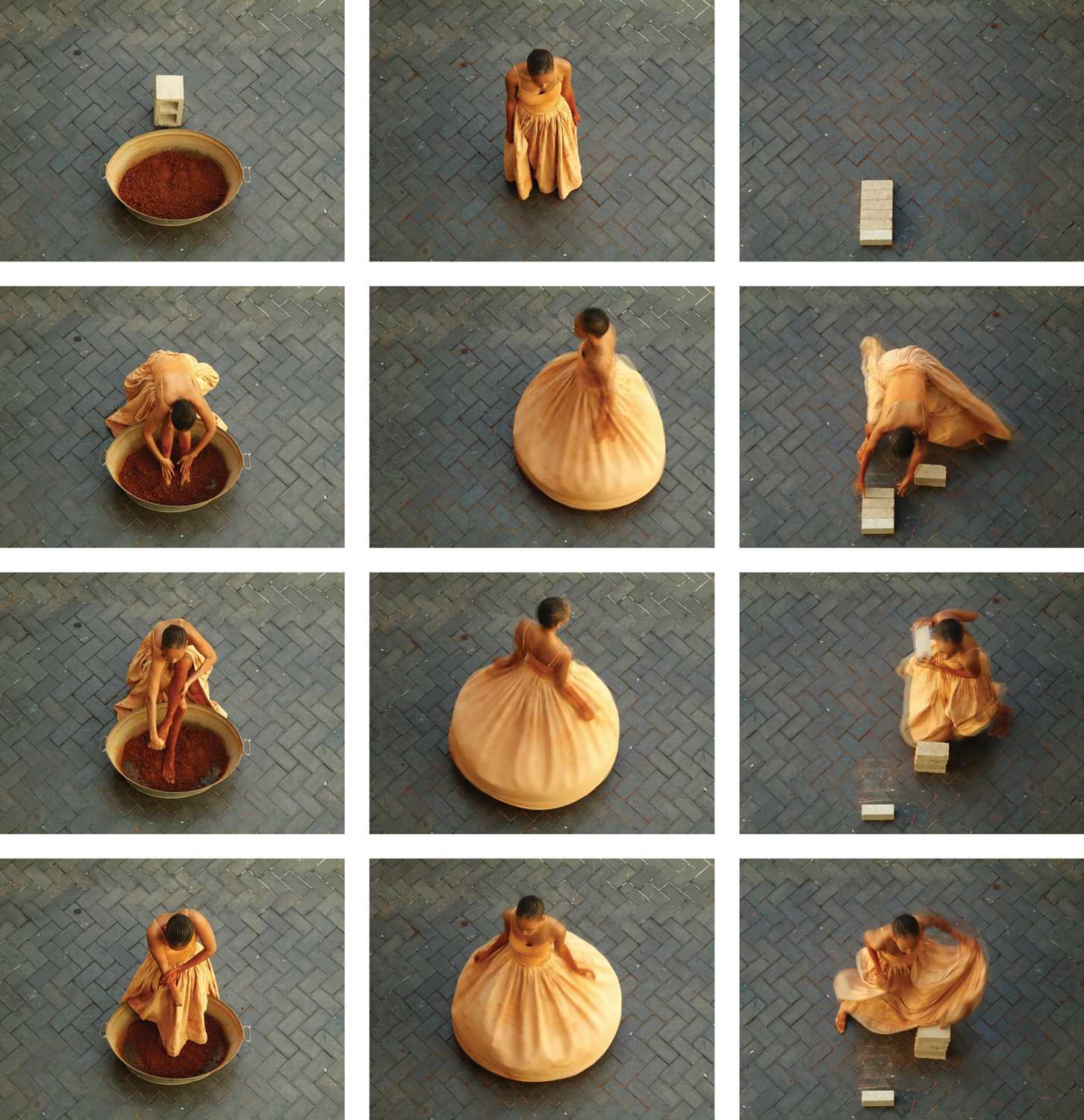 Bronwyn Katz’s Grond Herinnering exemplifies this insurgent potential. Centred on ushumpu, a traditional children’s game demanding intricate cognitive and motor coordination, the work weaves physical gesture - handling soil, spinning, constructing and dismantling brick formations - into a layered oral narrative. Shifting between present reflection and remembered exchanges with her grandmother, Katz stages an intergenerational transmission of knowledge in which play is both method and metaphor. The piece resists the linearity of colonial educational models, foregrounding instead the adaptability, opacity, and communal orientation of indigenous pedagogies.
