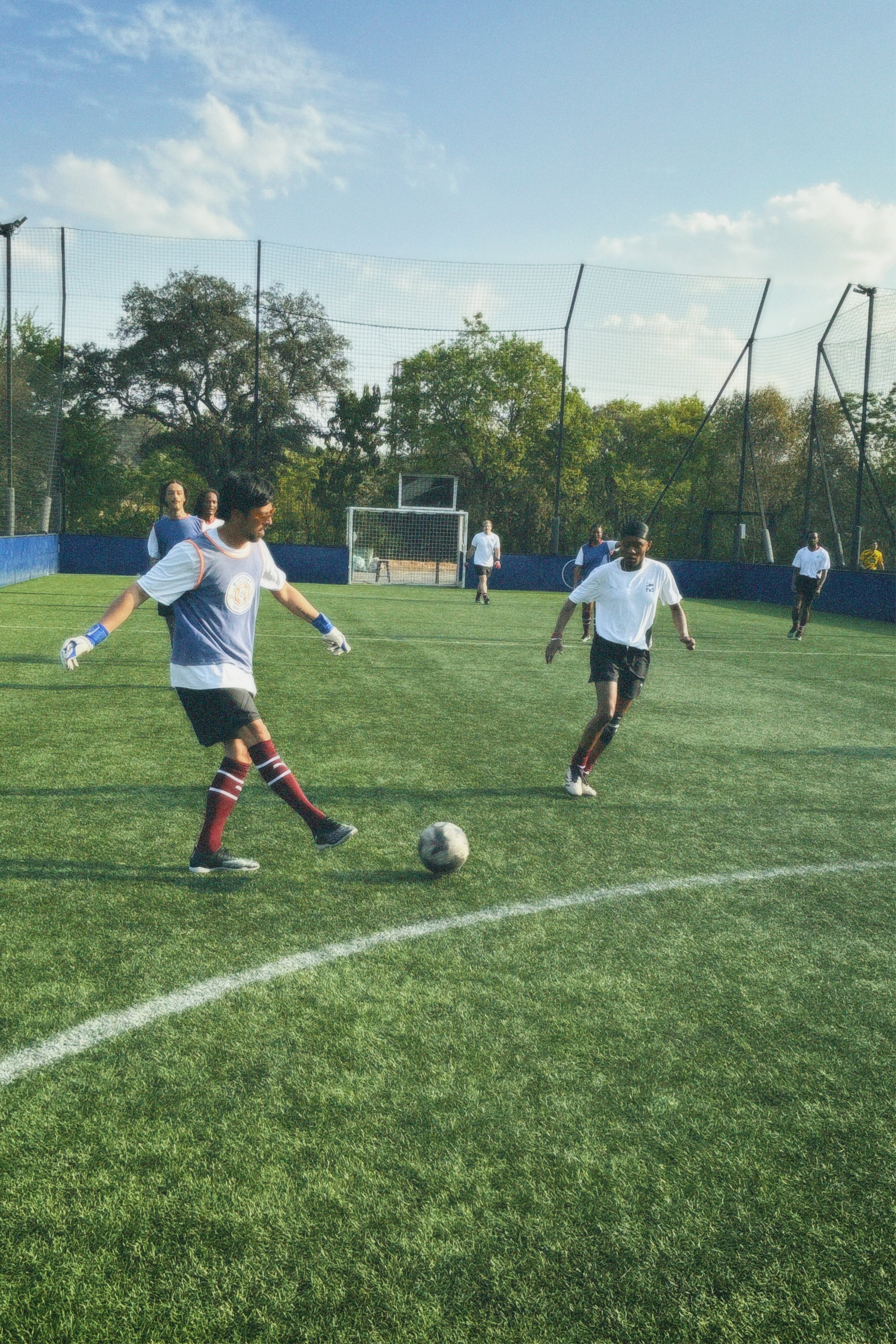 One compelling manifestation of this is Exhibition Match, an initiative curated by Alexander Richards and Phokeng Setai. Launched in 2023, the project explores the intersection of football and art, reframing the football pitch as a site of cultural play and social choreography. Beyond mere spectacle, it stages questions of collectivism, competition, and the everyday, using the rules and rituals of sport to probe how communities gather, negotiate, and imagine together. Conceived as a social intervention rather than a static exhibition, Exhibition Match has evolved into an annual tournament that convenes artists, curators, and cultural workers on the field. By leveraging the gravitational pull of major art fairs - first in Cape Town and more recently in Johannesburg - it transforms these hyper-commercial nodes into arenas for ludic assembly, opening a space where institutional circuits and informal networks collide under the sign of play.
