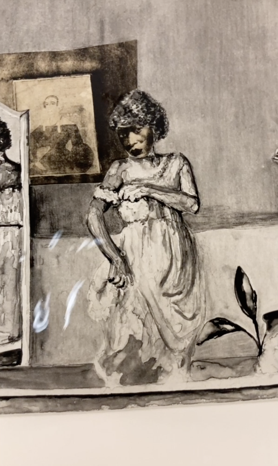 Puleng’s print Grounded was created using photogravure etching: a time-consuming, many-step process to create an intaglio plate from (in this case) a digital image. Photogravure’s depth of etch creates a unique tonal range that brings an unparalleled richness to the final image. Cinthia’s print Ne lave pas ton visage was made using direct gravure for which she drew and painted directly onto photographic film with charcoal, HB pencil and India Ink which was then transferred onto a copper plate and etched. “The technical aspects perfectly suited both Puleng’s and Cinthia’s work,” Jillian says. Puleng’s digital photograph received an elevated textural quality and direct gravure allowed Cinthia to transfer her beautiful mark-making in seductive, subtle inks and pencils.