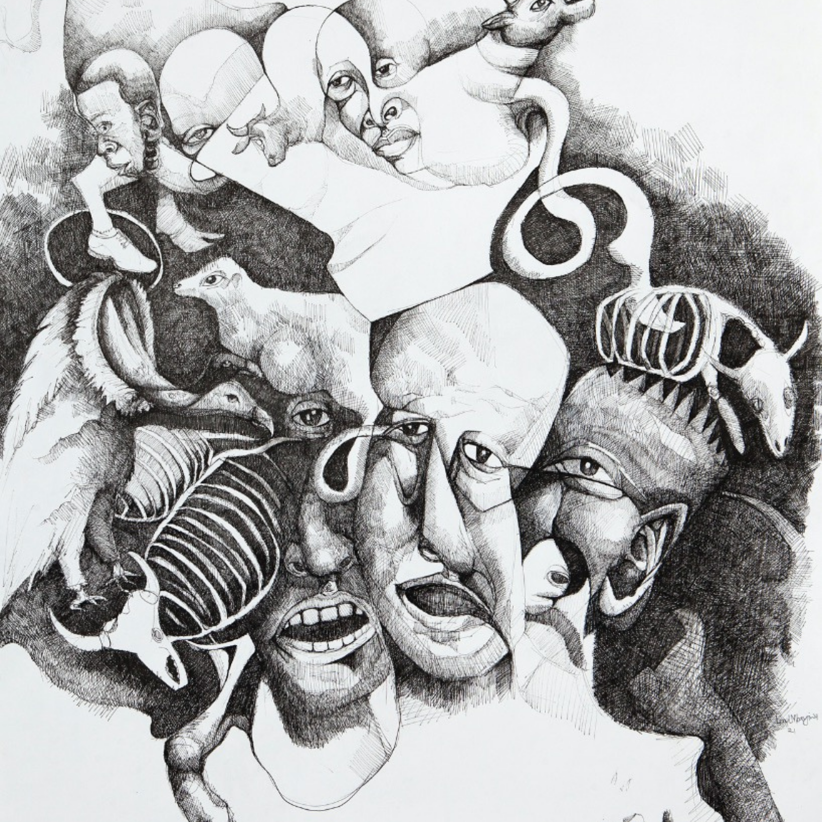 Lionel Mbayiwa's work in progress during an ArtistLab