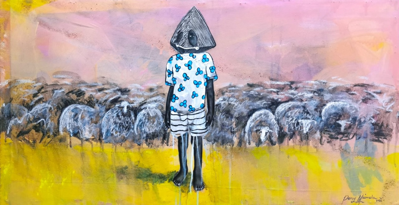 Percy Maimela, Are we there yet I, 2021, Mixed media on canvas, 84 cm x 60 cm, R25,217.39 ex. VAT, Presented by WORLDART