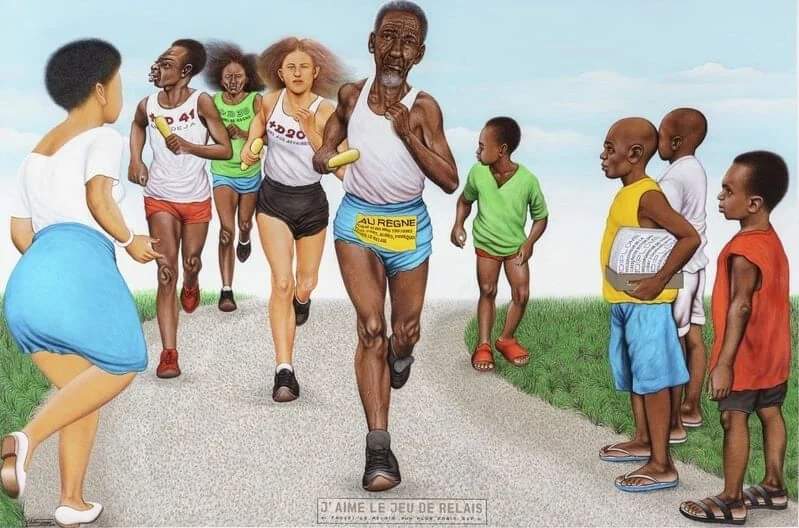 Cheri Samba, Le Partage du Gros Poisson, 2003, Acrylic on Canvas, 81 cm x 100 cm, R121,860.00 (6.000€) ex. VAT