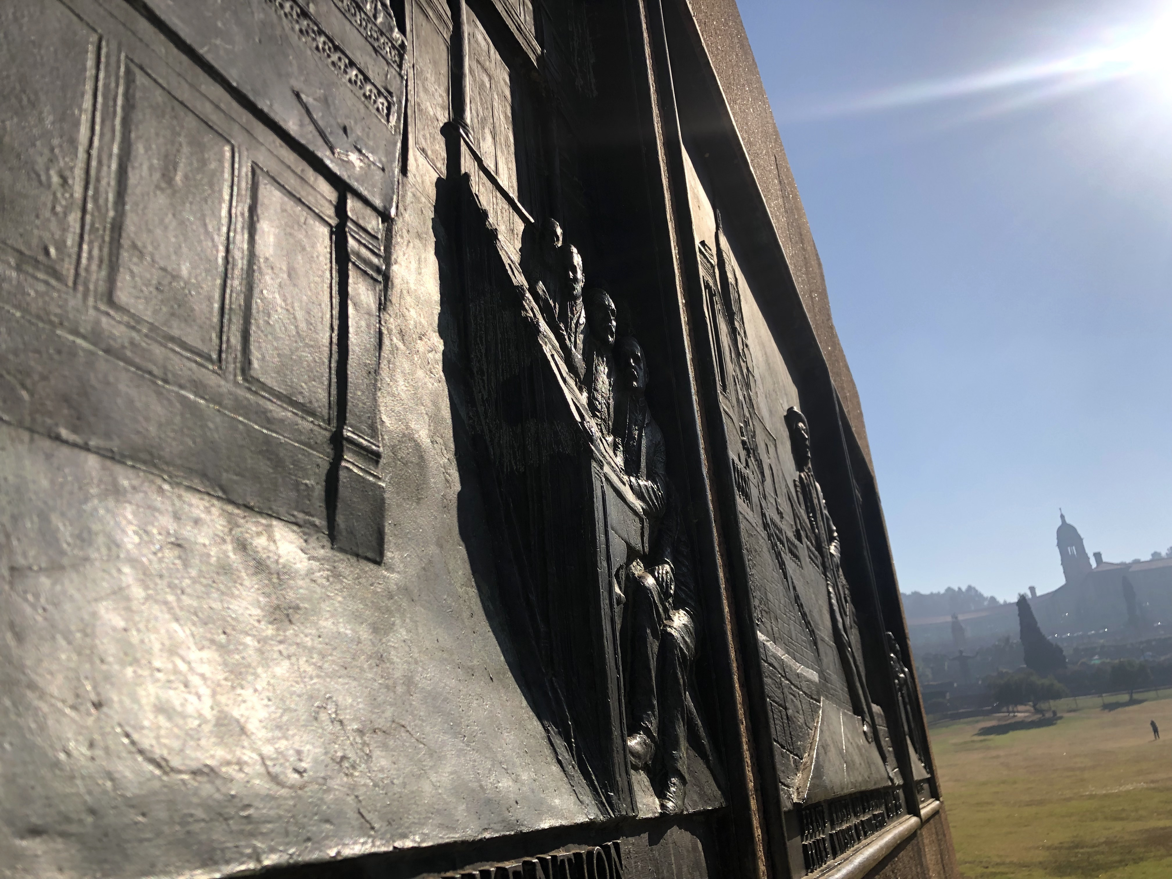 Artist Paul Emmanuel's latest project, Rising-falling, launched on 15 June 2021. The artist publicly projected his existing video work, Remember-dismember (2015), onto the pedestal of an equestrian monument to General Louis Botha, at the Union Buildings in Pretoria.