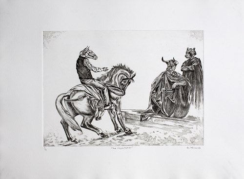 Richard Specs Ndimande, The Negotiator, 2021, Edition 1/10, Etching on Hahnemuhle, Paper size: 39 x 53.5 cm, Image size: 35 x 25 cm