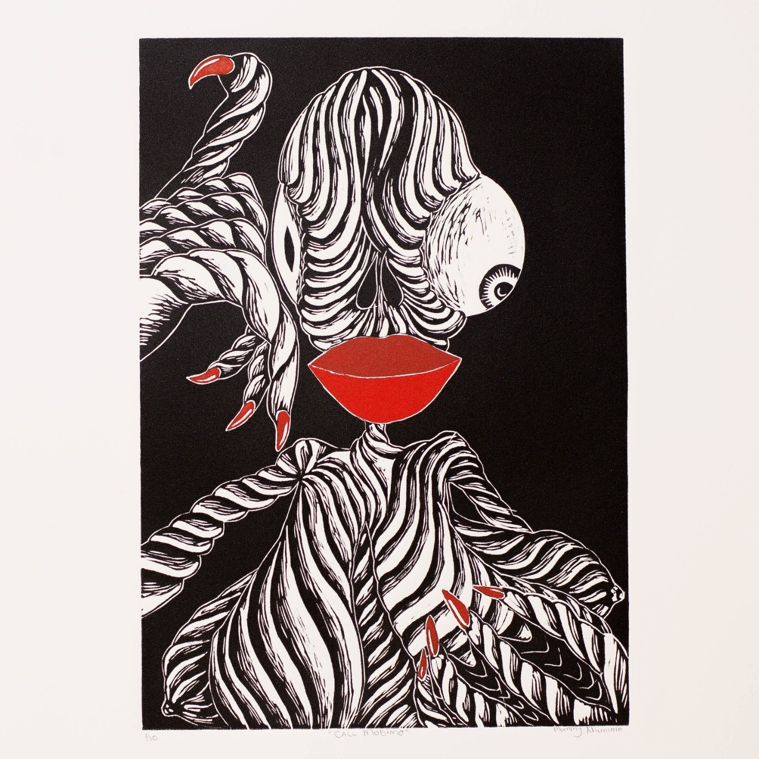 Artwork above: Fleur de Bondt, The Hook That Feeds, 2021, Linocut (shaped) and Emboss on Hahnemuhle, Edition 1/10, Paper size: 39 x 53.5 cm, Image size: 27 x 38cm