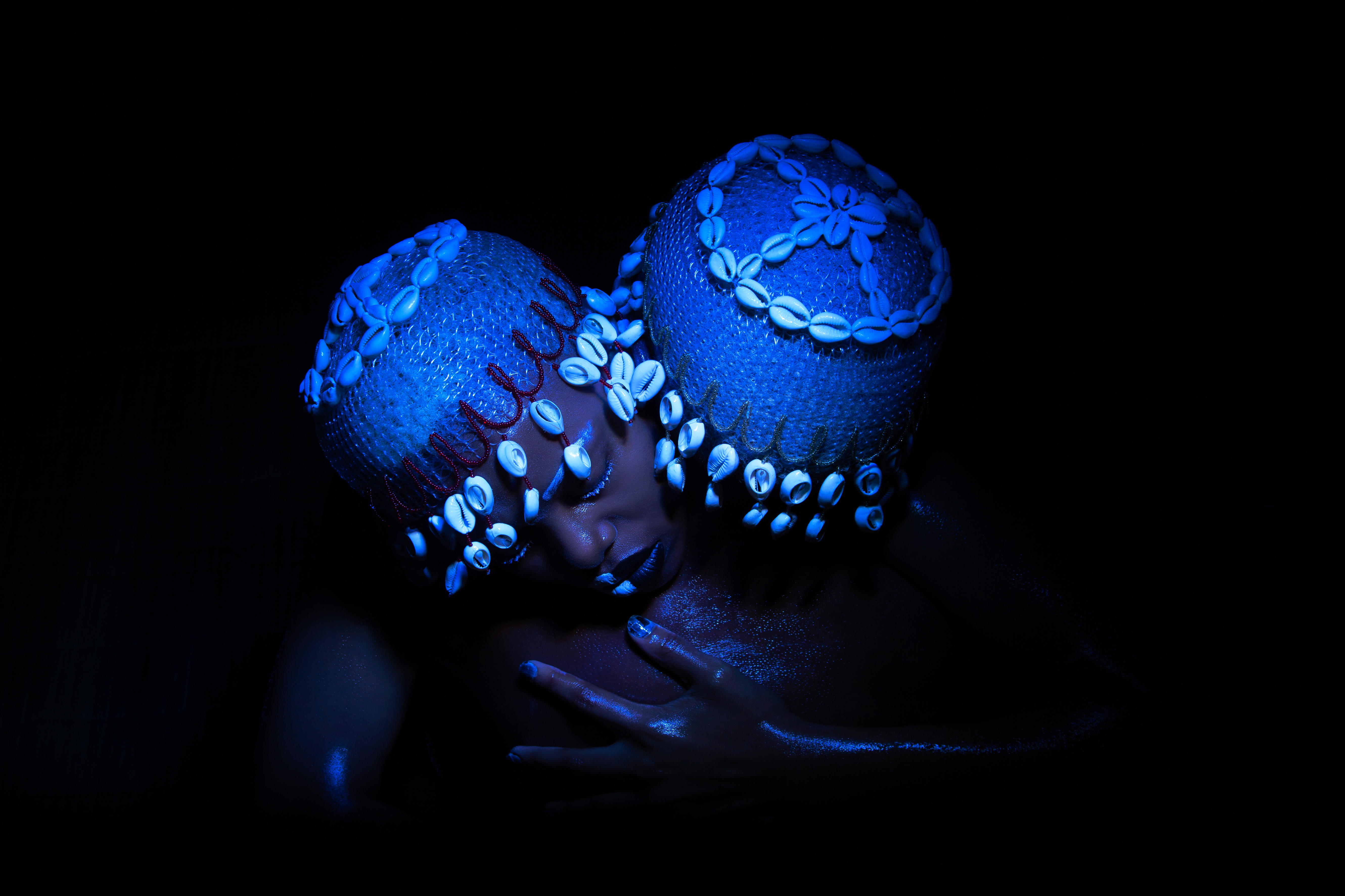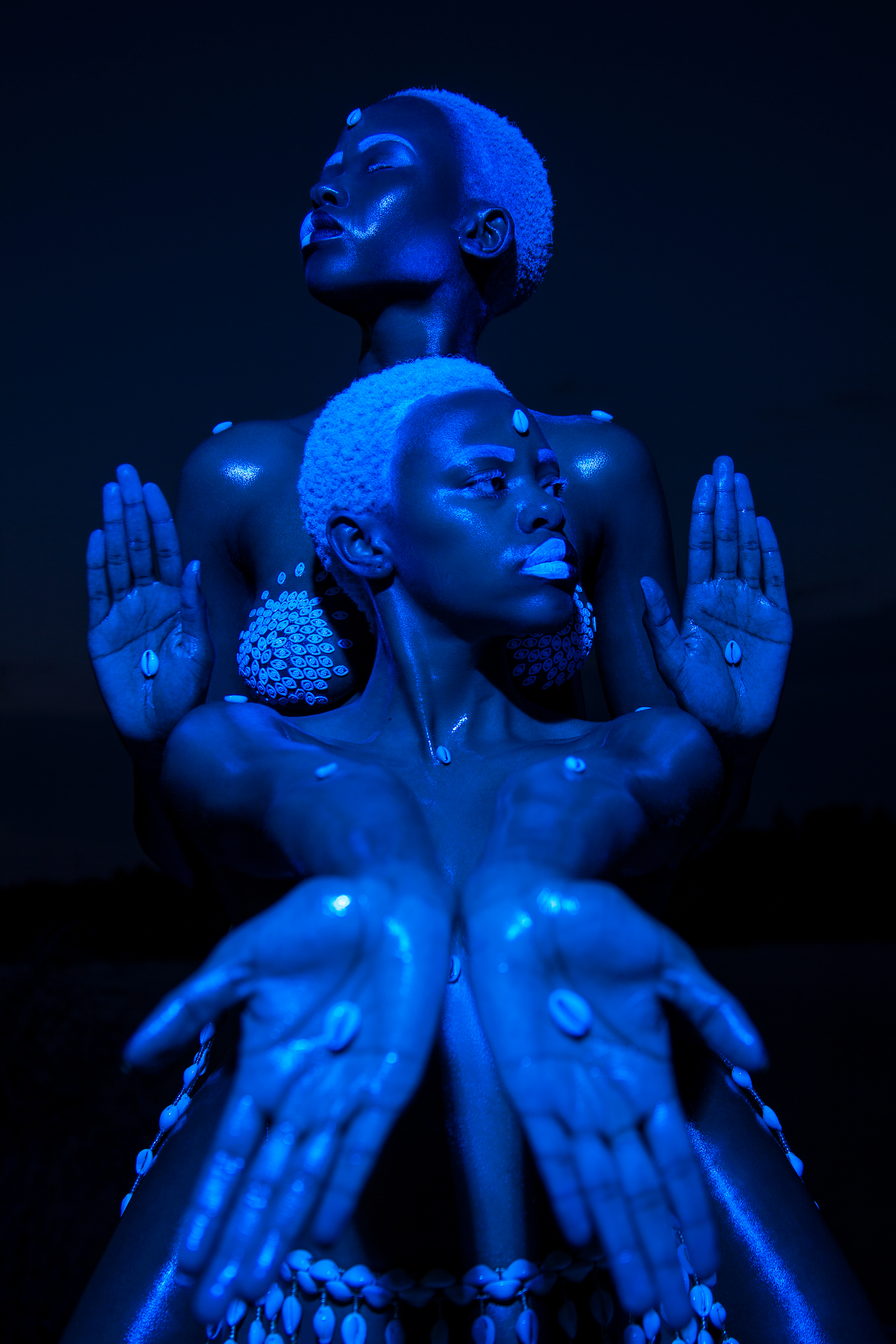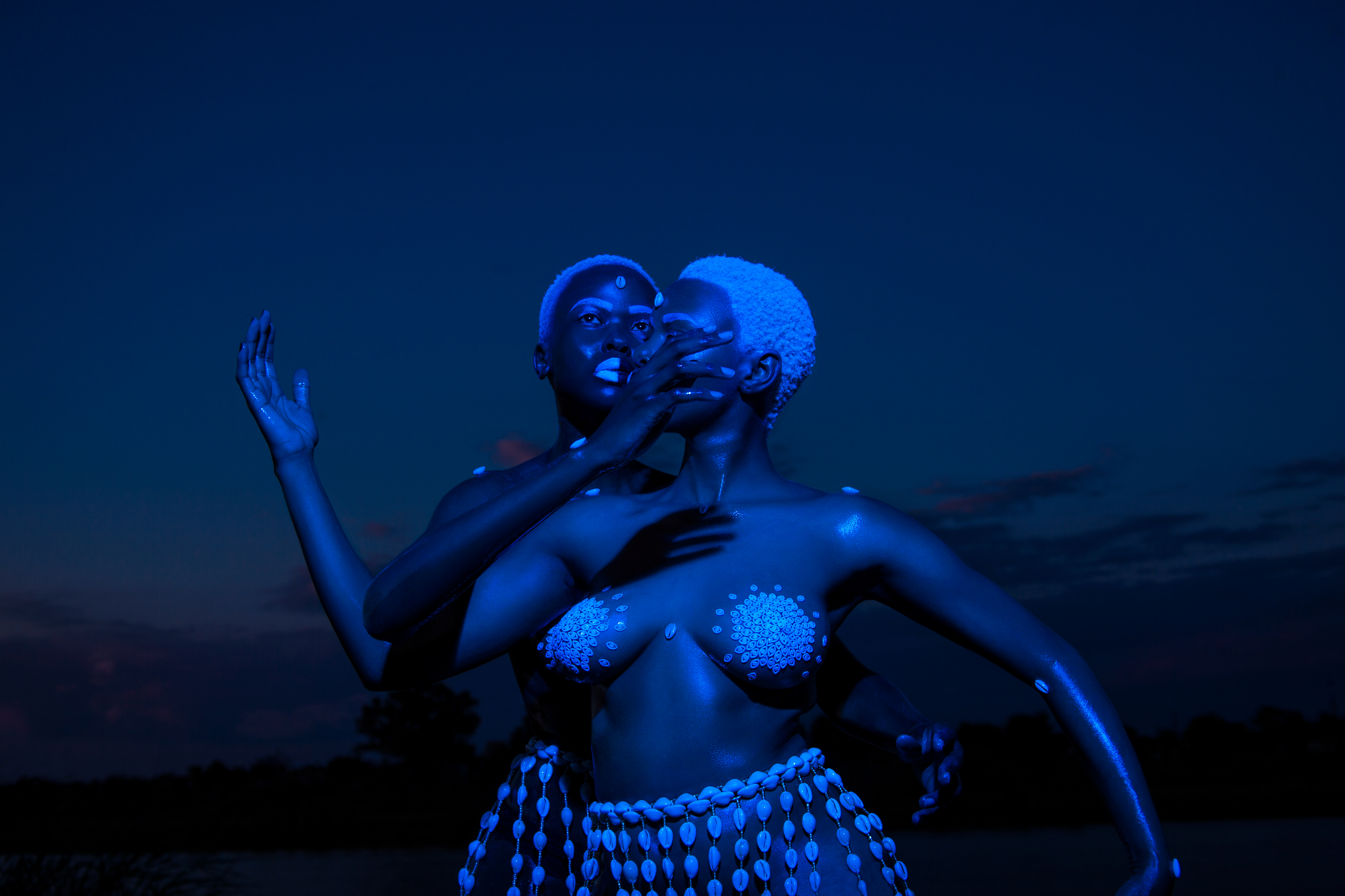 Umseme Uyakhuluma:A celestial conversation” is a collaborative project whose core team is made up of an All African Women production including Zana Masombuka (producer, conceptual director, art director and actress), also known as Ndebele Superhero, whose quest is to amplify representation and African Storytelling through her artistic practice; Lafalaise Dion(producer, costume designer and actress) whose work with cowrie shells has been incorporated symbolically into the project (you would've previously seen her work in Beyonce's 'Black is King' and 'Spirit'); Tsholofelo Maseko (producer, art director and actress) a familiar face from integral South African television shows and films; Mapula Lehong (sound designer and editor), a SAFTA award-winning sound designer and multi-hyphenate whose poetry features in Zanele Muholi's SomnyamaNgonyama, Hail the Dark Lioness; Boipelo Khunou (videographer) a multidisciplinary artist and founder of archival platform BOTAKI KE BOTSHELO which merges education and curation of creativity from Africa; and Bontle Juku (photographer), a visual artist and conceptual photographer whose work explores narratives and sociopolitical discourse surrounding the Black body. She was one of Design Indaba's Emerging Creatives in 2020.The core team were supported by a larger cast and crew of women of all ages in South African and the Ivory Coast.