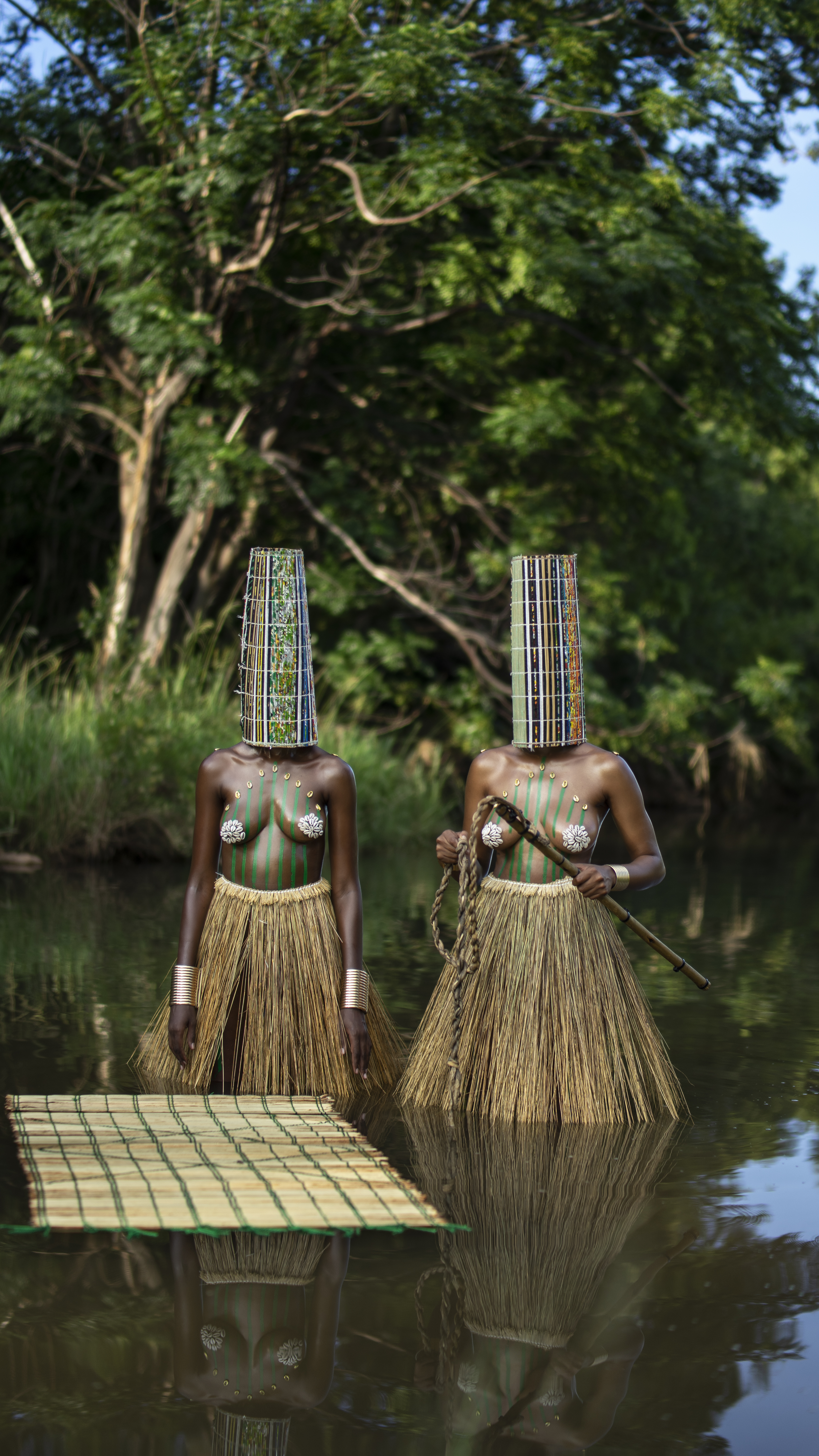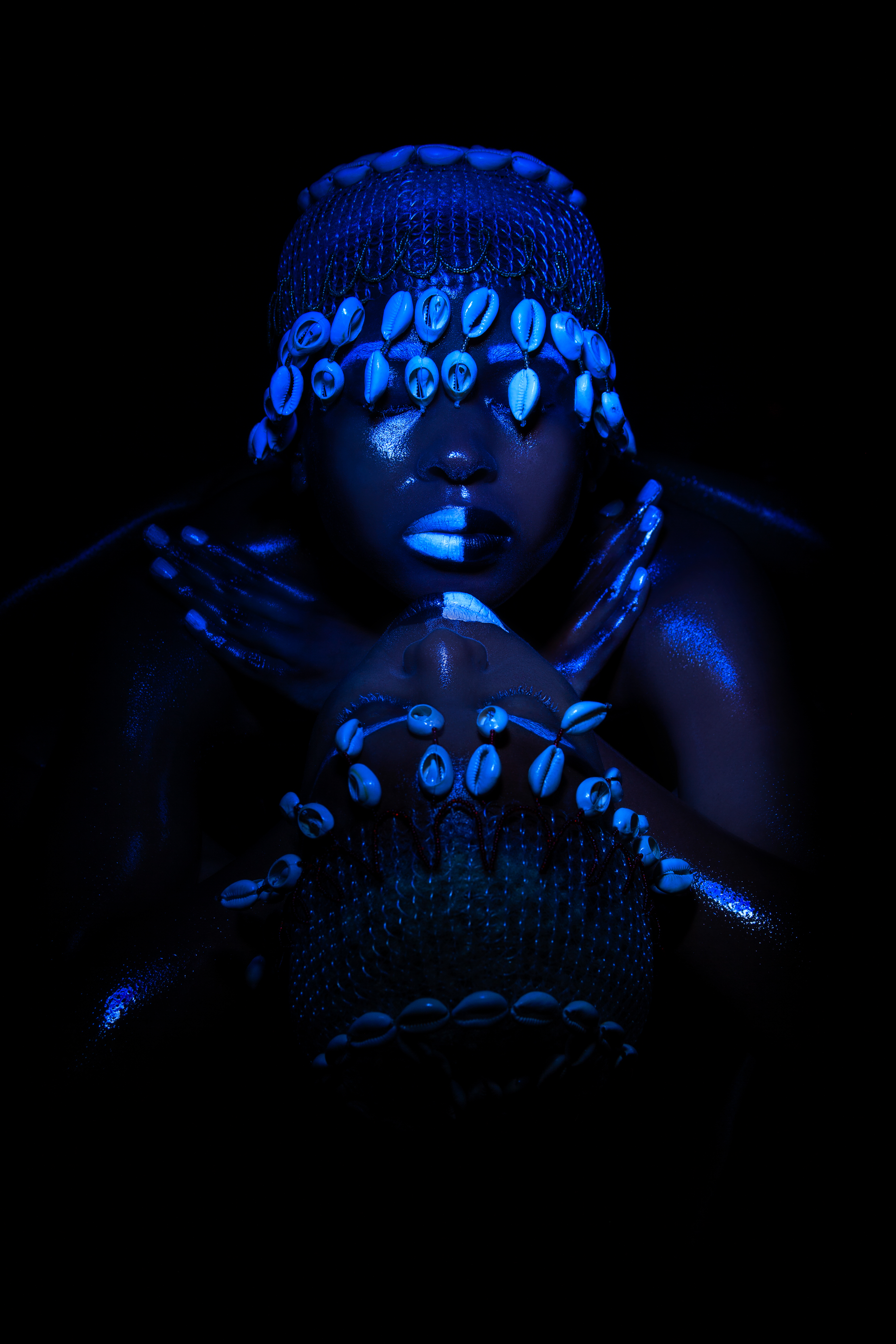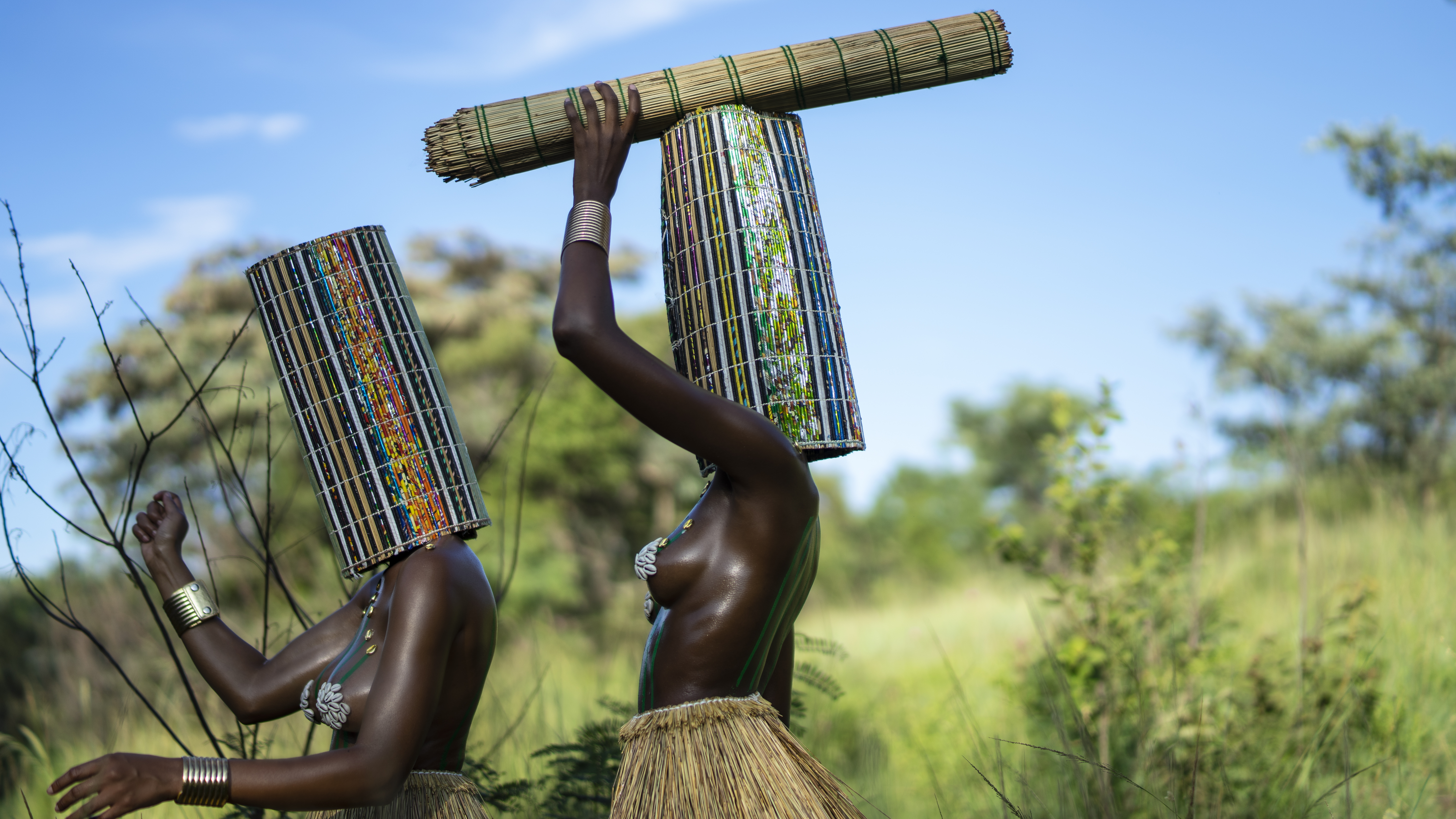 Umseme Uyakhuluma:A celestial conversation” is a collaborative project whose core team is made up of an All African Women production including Zana Masombuka (producer, conceptual director, art director and actress), also known as Ndebele Superhero, whose quest is to amplify representation and African Storytelling through her artistic practice; Lafalaise Dion(producer, costume designer and actress) whose work with cowrie shells has been incorporated symbolically into the project (you would've previously seen her work in Beyonce's 'Black is King' and 'Spirit'); Tsholofelo Maseko (producer, art director and actress) a familiar face from integral South African television shows and films; Mapula Lehong (sound designer and editor), a SAFTA award-winning sound designer and multi-hyphenate whose poetry features in Zanele Muholi's SomnyamaNgonyama, Hail the Dark Lioness; Boipelo Khunou (videographer) a multidisciplinary artist and founder of archival platform BOTAKI KE BOTSHELO which merges education and curation of creativity from Africa; and Bontle Juku (photographer), a visual artist and conceptual photographer whose work explores narratives and sociopolitical discourse surrounding the Black body. She was one of Design Indaba's Emerging Creatives in 2020.The core team were supported by a larger cast and crew of women of all ages in South African and the Ivory Coast.