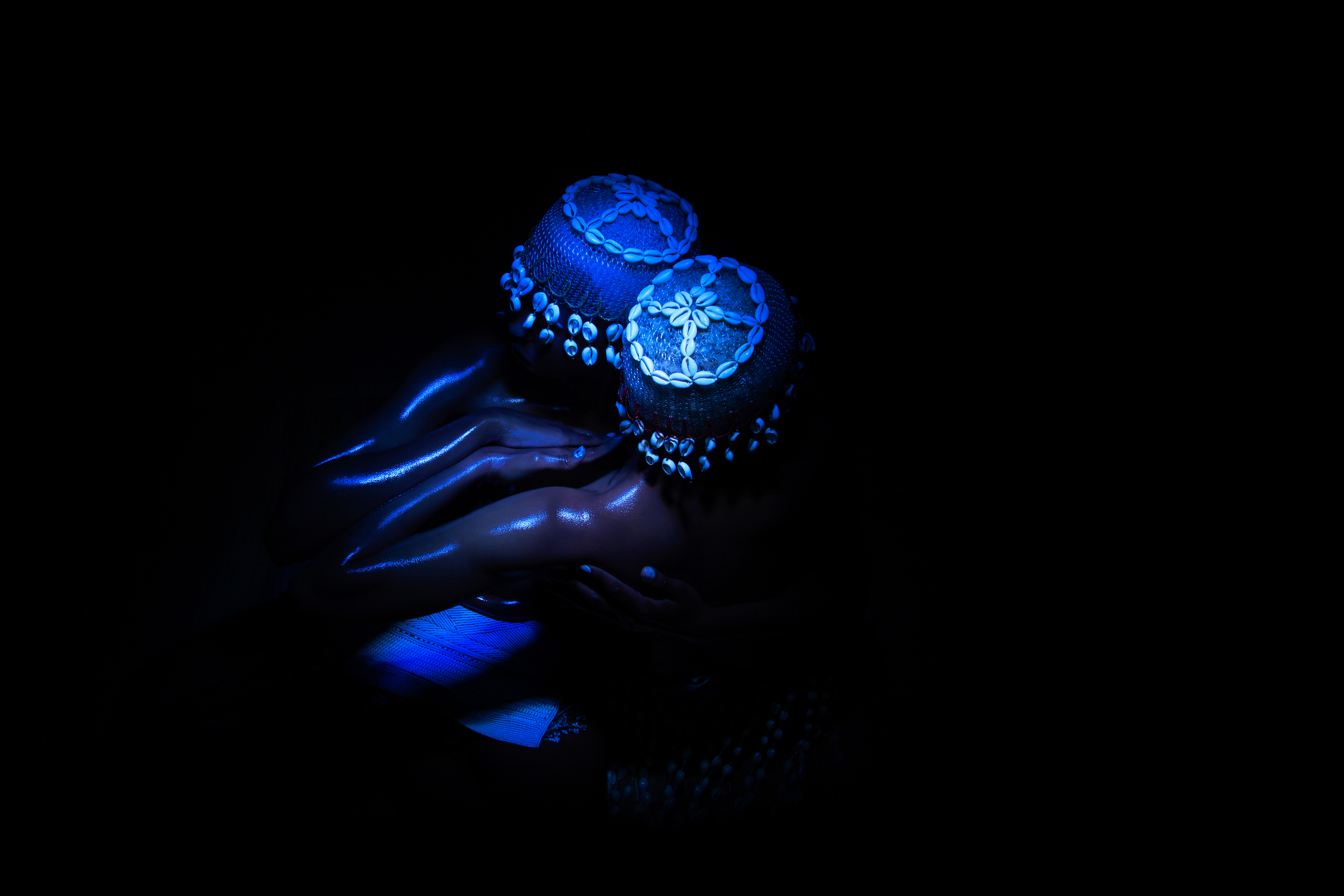 "Umseme Uyakhuluma: A celestial conversation" is a collaborative experimental body of work that aims to explore the power of the connectivity and duality that exists in different realms of existence and their subjective realities. The project goes deeper into the idea of communication and what that means for physical and non-physical spaces. “Umseme Uyakhuluma” directly translated is “The Straw mat Speaks”. It speaks to one of Africa’s most ancient ways of recording information using grass, which is an endlessly renewable source of material under historic land usage conditions. The project further looks at the reinterpretation of Bantu symbol writing, which is a form of ideography, that has evolved into a form of steganography. It was a form of coded language used in various parts of the continent to communicate sacred messages. This type of communication is preserved today in the Ndebele tribe, amongst others in Africa, called “Umgwalo”. The project parallels this with the historical significance of the use of cowry shells on the continent, honouring their divine importance in African Spiritualism and treating them as the messengers of the non-physical space explored in the project.